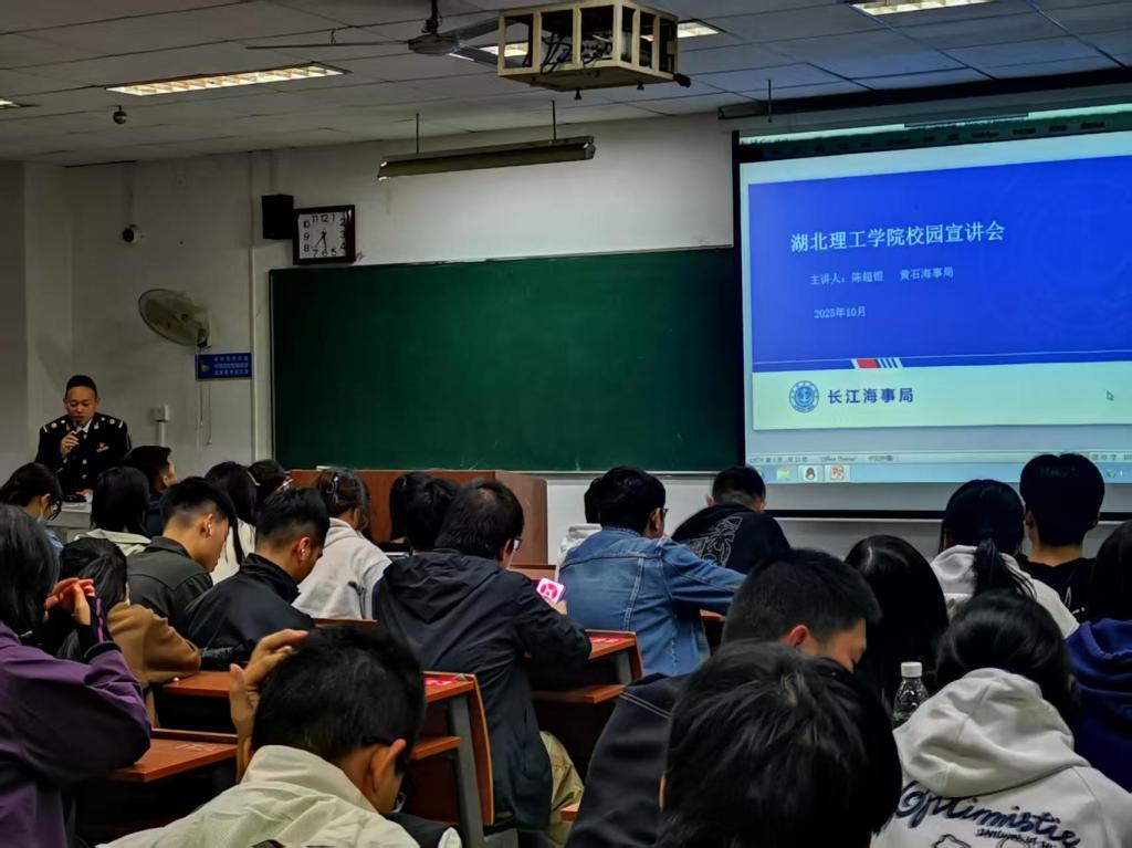 尹渊主任结合海事系统招录实际,系统解读了岗位特点与报考要求。他详细介绍了海事局在水上安全监管、船舶污染防治等方面的职责,建议同学们结合自身兴趣与专长,选择适配岗位以增强竞争力。尹主任特别提到,尽管黄石海事局历年招录涵盖全国各地考生,鼓励同学们善用区位优势,积极把握机会。